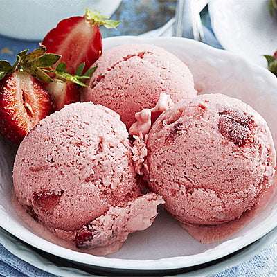 Enjoy vanilla ice cream, chopped nuts, chocolate / strawberry dressing.