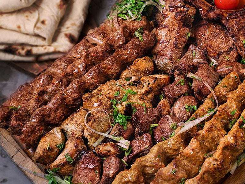 Enjoy a mix of chicken, lamb, beef, kebab (minced beef cutlet) with a host of oriental spices grilled on coal fire and served with grilled onions and seasonal paprika.