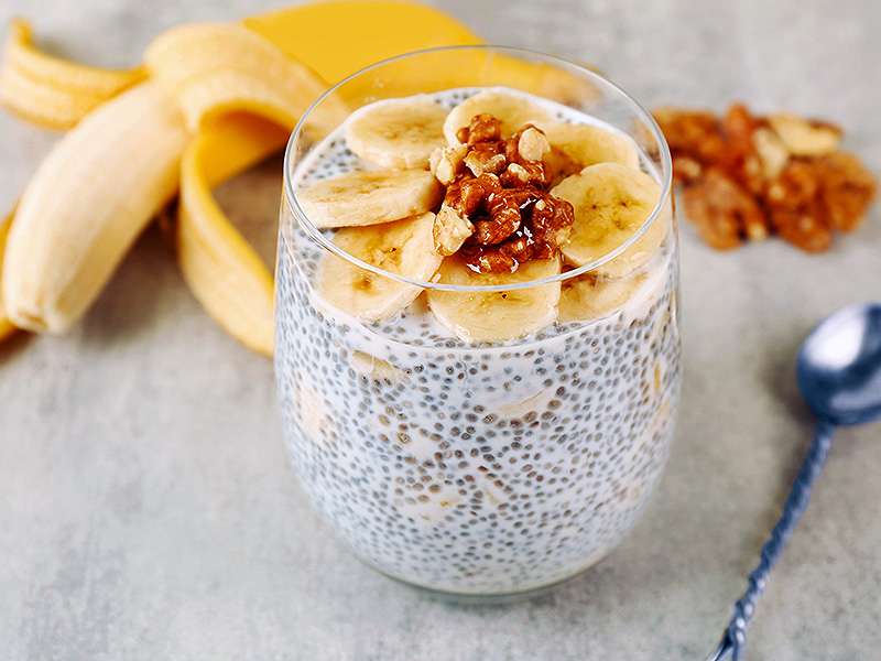 Enjoy banana custard pudding with lavish chia seeds, bananas, fresh seasonal berries, and ice cream of your choice.