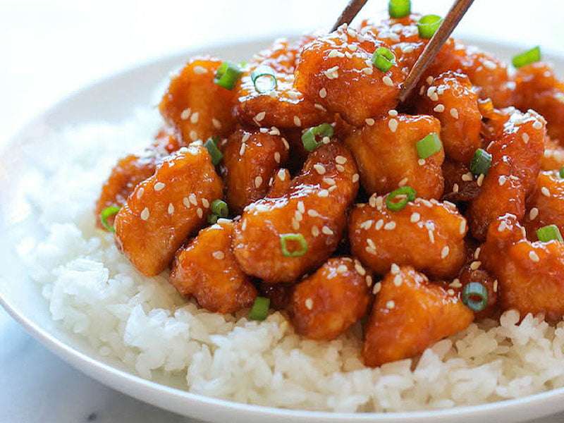 Enjoy chicken (shrimp / salmon), carrots, paprika, corn, garlic, sesame, spring onion, served with aromatic white basmati rice.