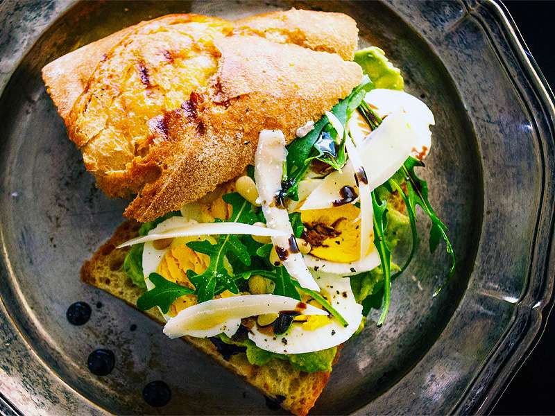 Enjoy tuna spread, two boiled eggs, butter, blue cheese, seasonal fruits and berries, full-grain bread, arugula, and lettuce mix.
