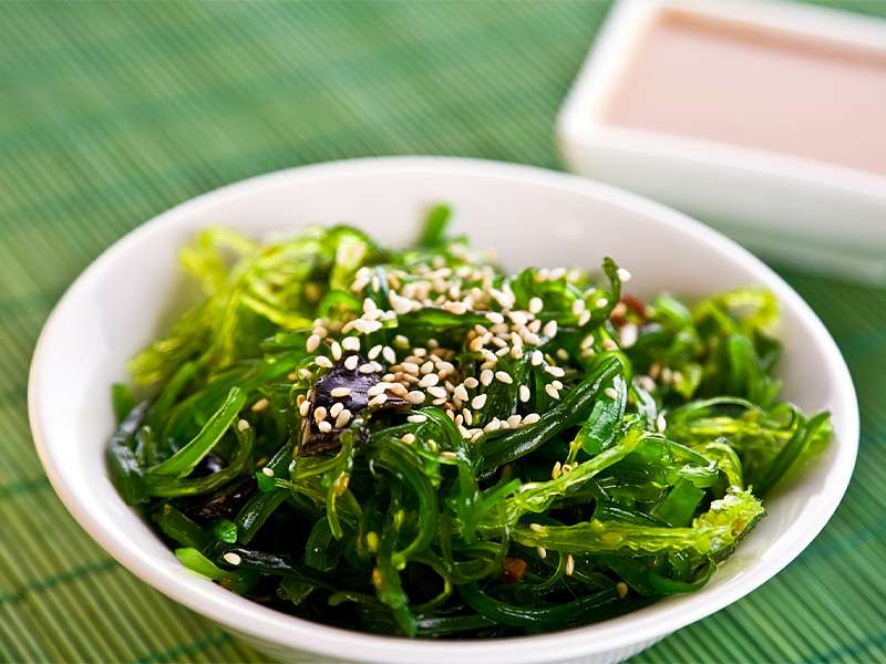 Enjoy wakame, sweet pepper, lemon, sesame, and white radish.